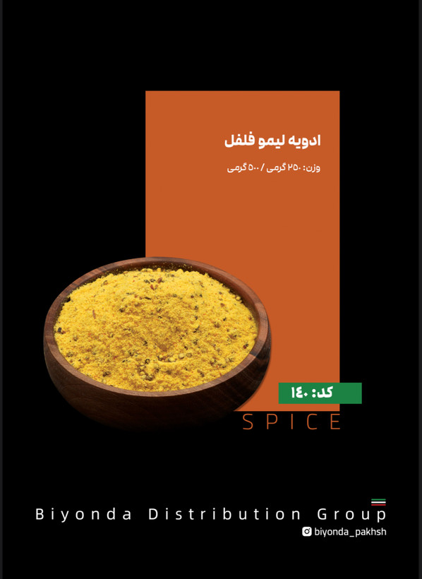 ادویه لیمو فلفلی: ترکیبی از طعم لیمو عمانی و فلفل یک طعم بسیار جذاب دارد(طعمی ترش و تند)
